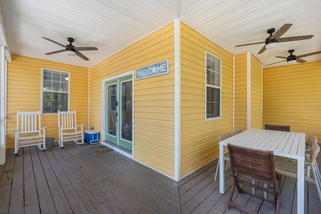 The main house sleeps 8 people comfortably. The shared bathroom has tub for small children. The kitchen has everything you need to cook your family meals. There's a screened in porch with a dining table to enjoy outdoor meals.